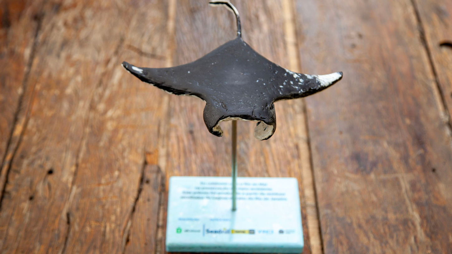 OBRAS DE ARTE CONFECCIONADAS COM O LIXO RECICLÁVEL COLETADO NAS PRAIAS, NOS MUTIRÕES DE LIMPEZA.